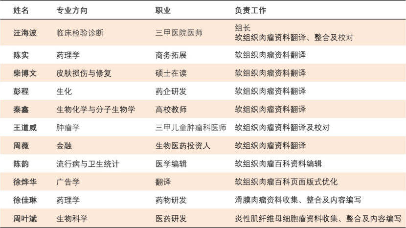 Soft tissue sarcoma List of volunteers