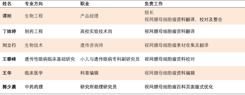 Retinoblastoma List of volunteers